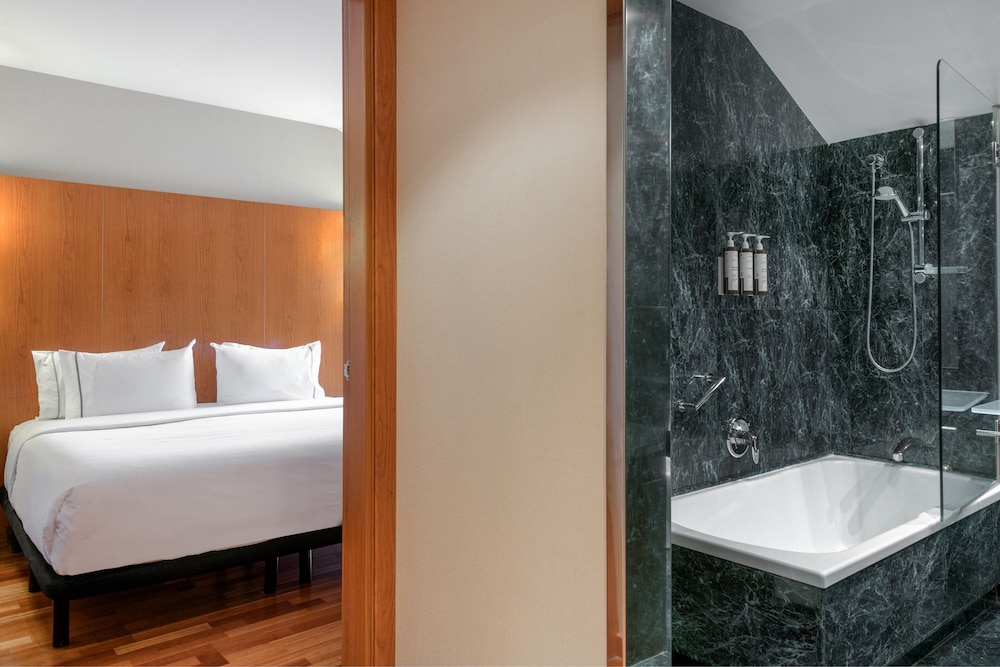 This is a standard AC Hotel. I stay often at hotels at this chain, convenient, clean and good breakfast in my opinion. Maybe their design isn't as modern as it used to be but space and bathroom...