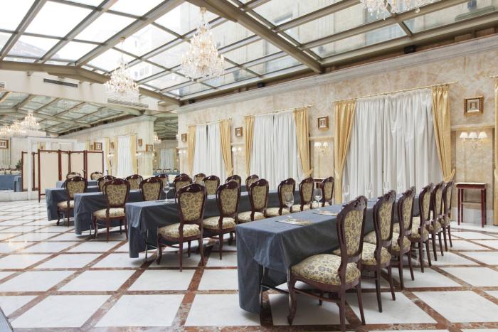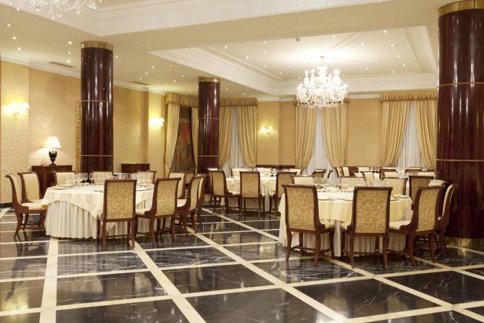 Renaissance style hotel in a good area and within walking distance from the square and restaurants.There are also sops surrounding the hotel. There are gilt framed mirrors and paintings throughout...