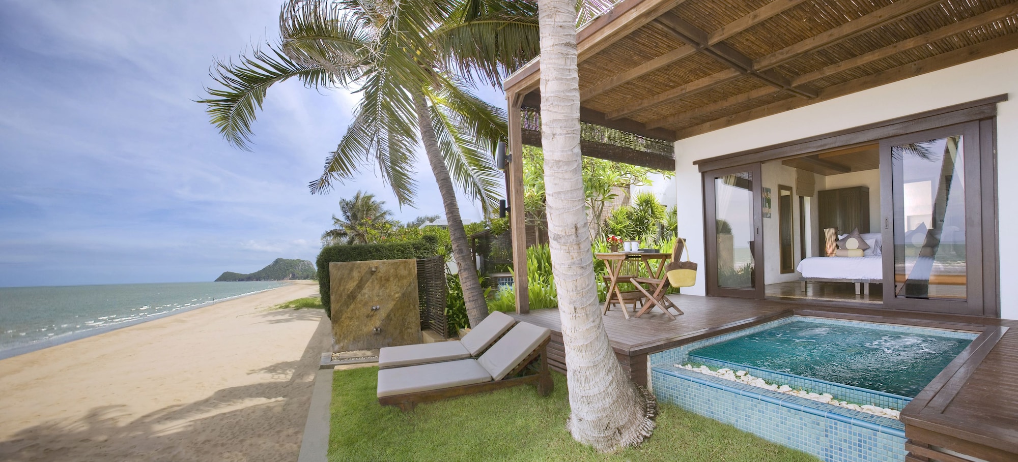 Located on a peaceful Pranburi beach. Very chilling and private resort. View from our room is breathtaking and romantic. Love the outdoor shower and jacuzzi. The staffs are wonderful. Delicious...