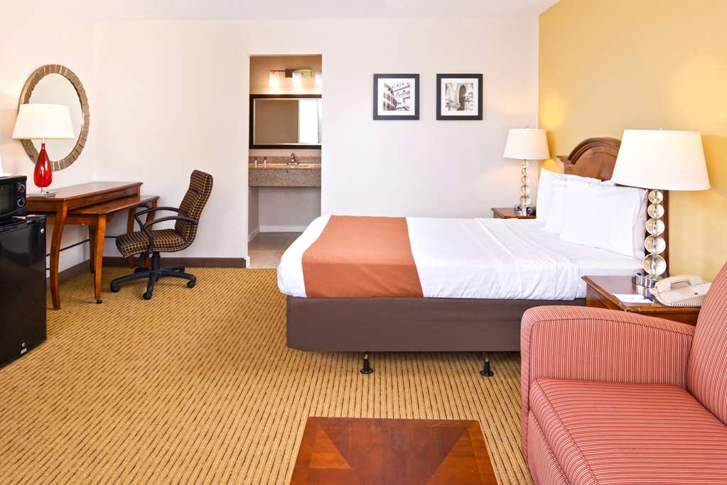 The room was very nice new rugs n new beds comfy n clean quiet stayed on ground level n close to shopping n restaurants grocie stores n of course a restaurant 20feet away with a bar if u want to...
