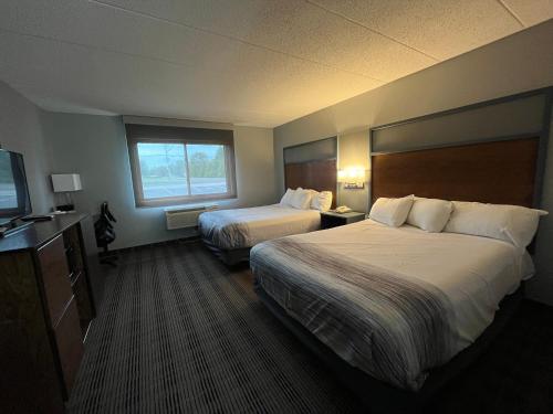 I stayed here because it had decent ratings and cheaper than Americinn. This place sorta look like a 20 year old Americinn, similar layout. The room was fine for me, beds on the stiff side but I...