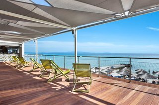 Very nice location. Sunbeds are aboundant. Parking is not a problem for those who prefer going there by car. A perfect sea. The foods might be better. Not to worry. Prefer bed & breakfast and try...