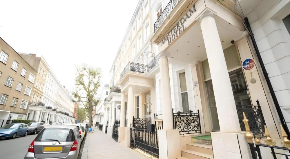 The Amsterdam Hotel worked great for us this trip. Just around the corner from the Earl's Court Tube station. Lots of restaurants and stores nearby. Our room was a double, and featured big windows...