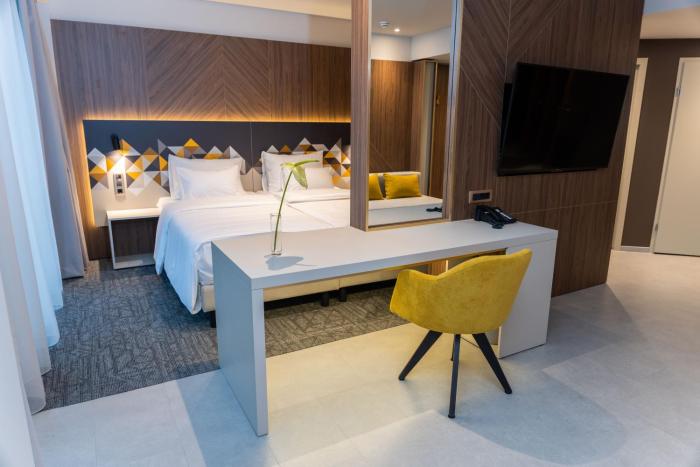Located in Ljubljana, Austria Trend Hotel Ljubljana is in the business district, a 4-minute drive from Bezigard Stadium and 9 minutes from National Museum of Slovenia. This 4-star hotel is 3.6 mi (5.8 km) from Ljubljana Castle and 2.2 mi (3.6 km) from Franciscan Church of the Annunciation.