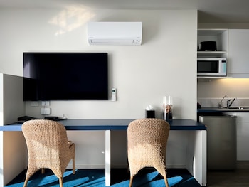 Make yourself at home in one of the 16 air-conditioned rooms featuring kitchenettes with refrigerators and microwaves. Rooms have private balconies or patios. Flat-screen televisions with digital programming provide entertainment, while complimentary wireless Internet access keeps you connected. Conveniences include desks and coffee/tea makers, and housekeeping is provided daily.