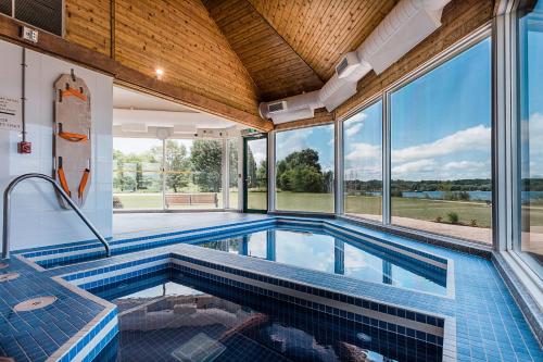 Right on Georgian Bay, there is a great view from the restaurant and patio. Walking trails adjacent to the hotel along the bay. Walking distance to town. Great restaurant and rooms. Small fitness...