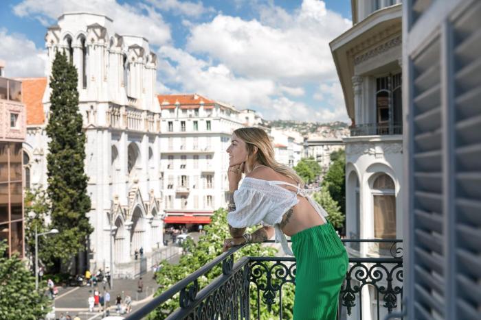 This urban hotel is located in the heart of Nice, on a main road and just a few steps from the sea. It is about 4 miles to Nizza (NCE) Airport.