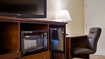 Make yourself at home in one of the 98 air-conditioned rooms featuring refrigerators and microwaves. Complimentary wired and wireless Internet access keeps you connected, and cable programming provides entertainment. Partially open bathrooms with shower/tub combinations feature complimentary toiletries and hair dryers. Conveniences include desks and complimentary weekday newspapers, and housekeeping is provided daily.