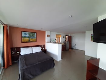 Make yourself at home in one of the 14 air-conditioned rooms featuring refrigerators and flat-screen televisions. Rooms have private furnished balconies. Cable programming and DVD players are provided for your entertainment, while complimentary wireless Internet access keeps you connected. Private bathrooms with showers feature complimentary toiletries and hair dryers.