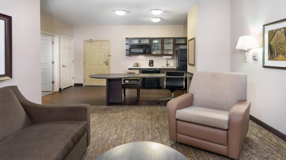 Make yourself at home in one of the 97 air-conditioned rooms featuring kitchens with full-sized refrigerators/freezers and stovetops. Wired and wireless Internet access is complimentary, and flat-screen televisions with satellite programming provide entertainment. Conveniences include safes and desks, as well as phones with free local calls.