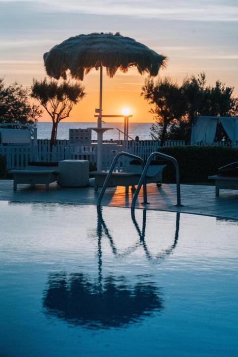 Guests can take a refreshing dip at the pool complex, which includes a children's swimming area. Refreshing drinks at the pool bar and a relaxing soak in the hot tub offer the perfect way to unwind. A short break or an entire afternoon on the sun terrace, which features outdoor lounge chairs and umbrellas, is time well spent. The wide range of activities offered at the resort ensures that there is something new to do every day, including tennis, bocce, beach volleyball and volleyball. The fitness rooms are perfect for a comprehensive workout. Various wellness options are available at the resort, including a spa, a sauna, a steam bath, a hammam, a beauty salon and massage treatments. Recreational facilities include an entertainment program, a kids' club and live music.