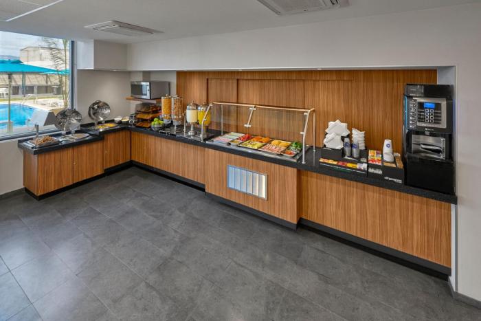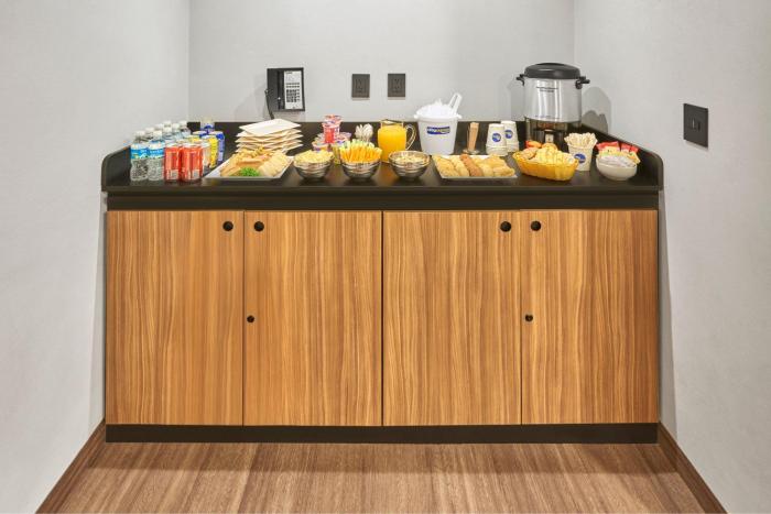 A complimentary hot/cold buffet breakfast is served on weekdays from 6:30 AM to 10:30 AM and on weekends from 7 AM to 11 AM.