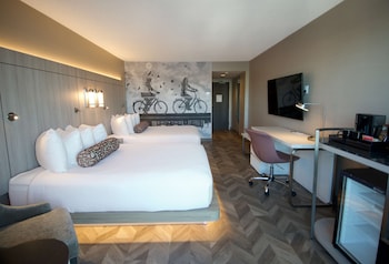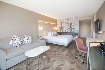 Make yourself at home in one of the 132 air-conditioned rooms featuring refrigerators and microwaves. Wired and wireless Internet access is complimentary, while 55-inch LED televisions with digital programming provide entertainment. Private bathrooms with shower/tub combinations feature complimentary toiletries and bidets. Conveniences include desks and complimentary newspapers, as well as phones with free local calls.