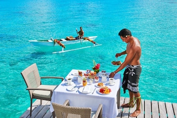 My wife and I stayed here for seven days in early April 2018 in an overwater bungalow. The resort is beautiful and our room was unbelievable. Able to swim and snorkel right from our private deck in...