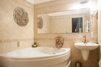 I traveled with my wife for a quick weekend at Budapest The hotel is located at the center near by train station The room I ordered with jacuzzi was fantastic, old wood floor, antique furniture...