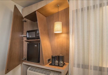Make yourself at home in one of the 94 air-conditioned rooms featuring refrigerators and Smart televisions. Wired and wireless Internet access is complimentary, while iPod docking stations and premium TV channels are also offered to provide entertainment. Conveniences include desks and microwaves, as well as phones with free local calls.