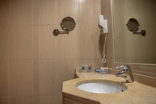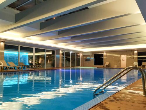 We stayed on the 5th floor. The rooms are big as well as the bathrooms. We had dinner one time there (they had a buffet) but it was not good. I don't recommend it. There is an indoor swimming pool...