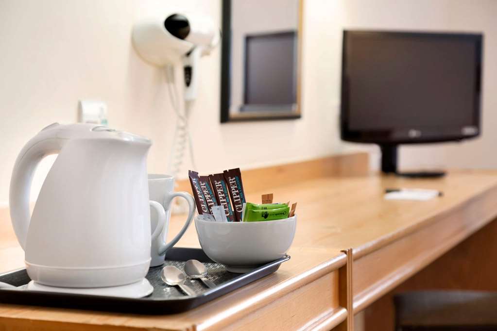 Rooms have a double bed or a sofa bed. Children's beds can be requested for younger guests. Features include a tea/coffee station and WiFi. The hotel has non-smoking rooms.
