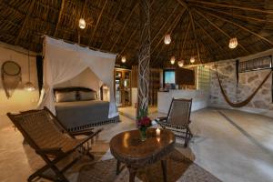 it seems the owners can't really make up their mind whether this is a hippy camp or upscale boutique hotel. We stayed with family for two nights and had two rooms. The idea of Maya style housing...