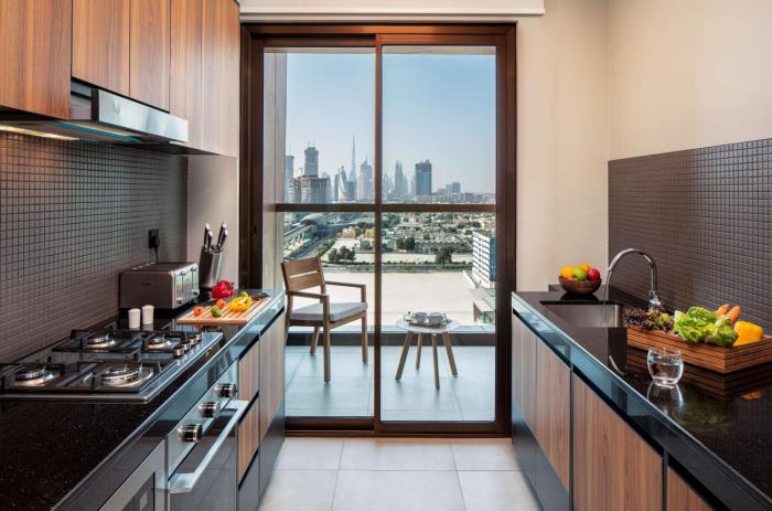three bdrm family suite burj vw kitchen/blcny