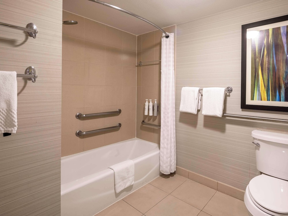 Make yourself at home in one of the 198 air-conditioned rooms featuring refrigerators and microwaves. Your bed comes with premium bedding, and all rooms are furnished with sofa beds. 32-inch flat-screen televisions with cable programming provide entertainment, while wireless Internet access (surcharge) keeps you connected. Private bathrooms with shower/tub combinations feature complimentary toiletries and hair dryers.