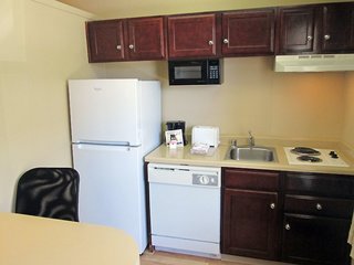 Make yourself at home in one of the 138 air-conditioned rooms featuring kitchens with refrigerators and stovetops. 32-inch flat-screen televisions with cable programming provide entertainment, while complimentary wireless Internet access keeps you connected. Conveniences include desks and microwaves, and housekeeping is provided on request.