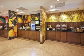 A complimentary buffet breakfast is served daily from 6 AM to 9 AM.