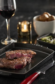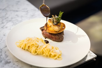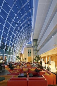 Lots of Amenities and what a location! Nice size rooms and nice value for a major chain. Beats the typical shoebox hotels in Europe! We didn't eat here at all, but steakhouse was crowded on the...