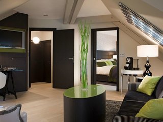 We had a room behind the flagpoles facing the park, and were not bothered by any street noise. We enjoyed the view of the small park opposite, and Place D'Arcy from our window, with the beautifully...