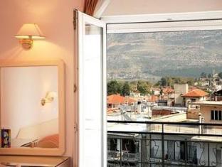 basic hotel, in the centre of the town.... not very clean and staff not very welcoming or polite.... there s a spacious parking lot next to the hotel where you pay extra. my room had a partial lake...