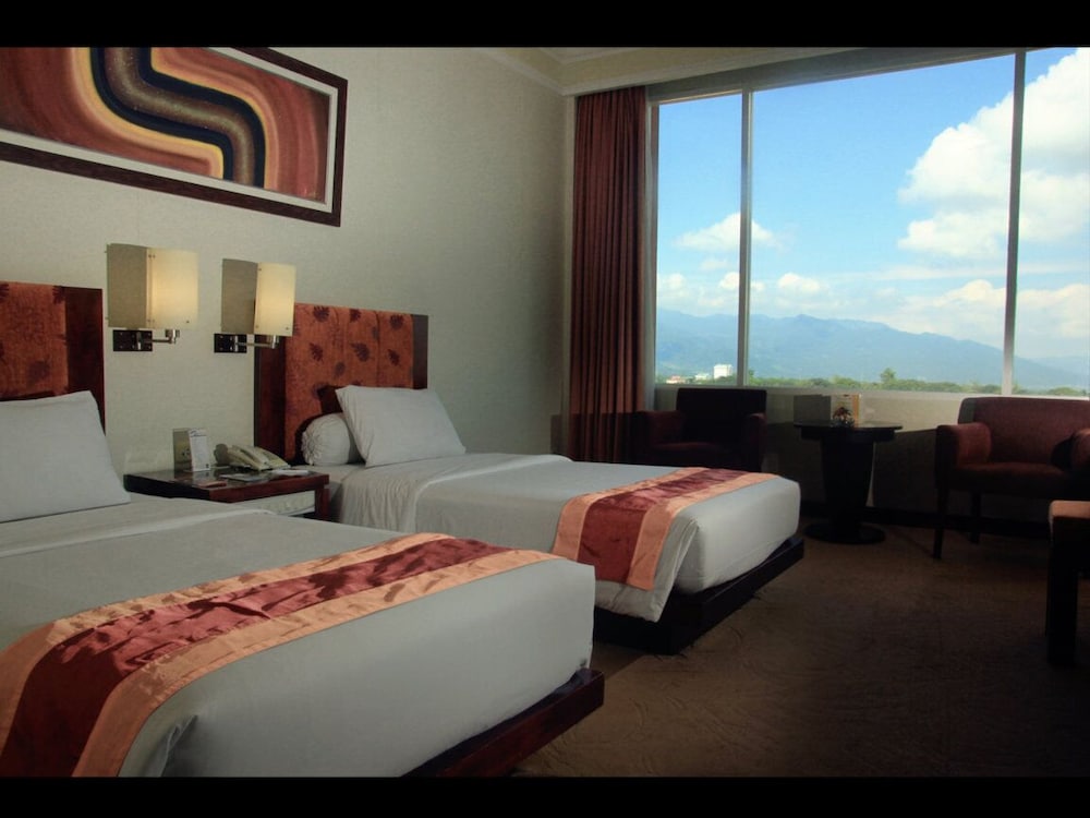 Easy to find in the middle of the city. Clean rooms and cleans bathrooms make me feels comfort to take a rest. Swimming pool with whirlpool suit for children. Nice view from the room, merbabu mount...