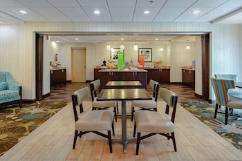 Friday night stay. Hotel was clean, bed was comfortable, room was large, but no place for clothes. No bathtub, but a nice shower. Breakfast in the morning was adequate and the coffee was good. Front...