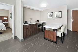 The suites are so convenient and reasonably priced. Two TVs allows spouses to watch what they each like. The microwave, fridge, counter are very convenient for staying in and ordering. The large...