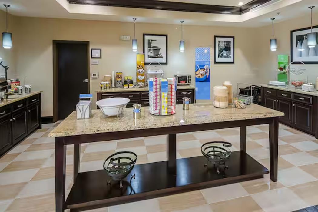 A complimentary buffet breakfast is served daily.