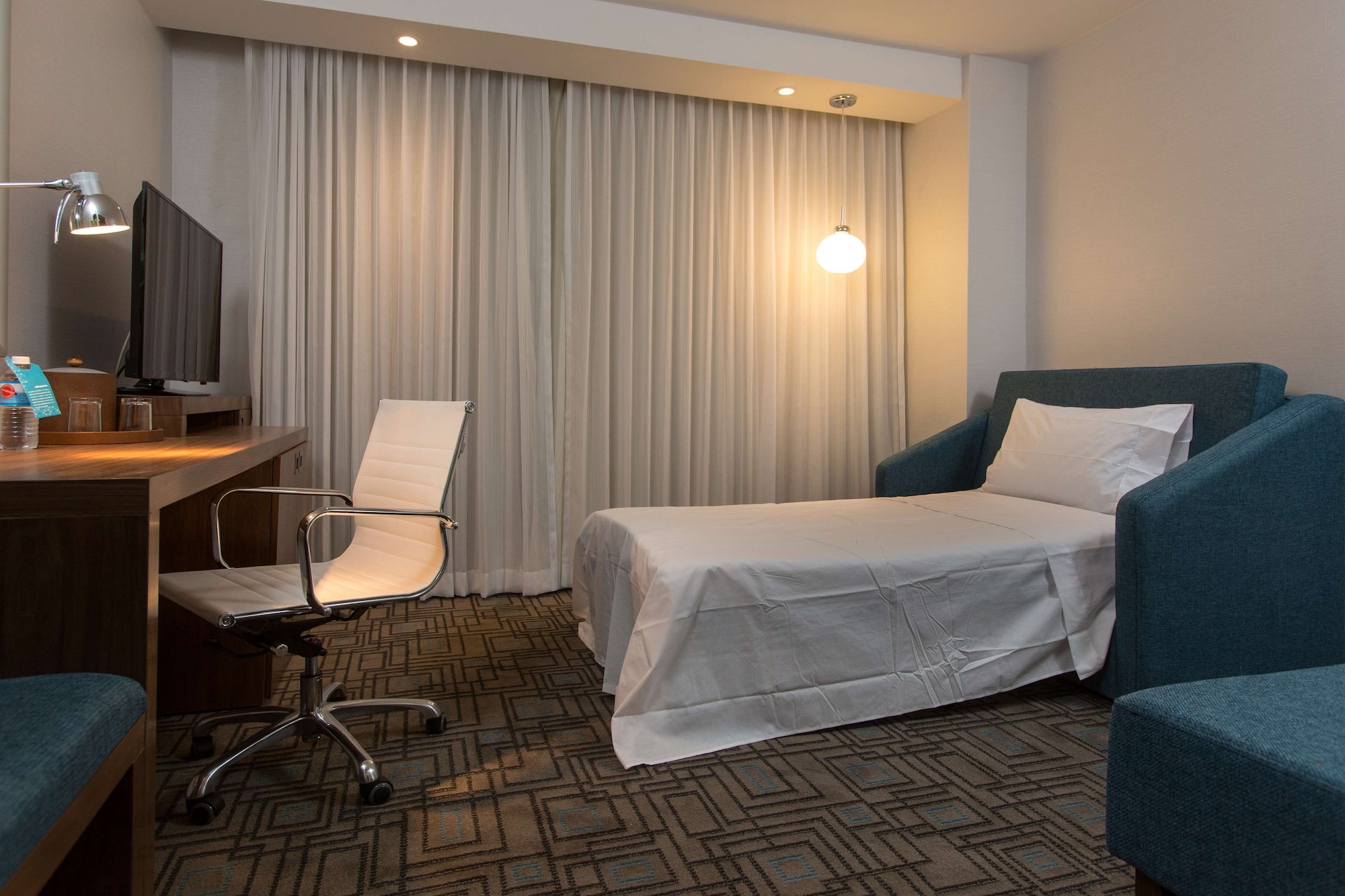 We stopped for one night on a road trip through Mexico. This is one of the smaller rooms I've had at a Hampton Inn, but would be fine for a single business traveller. One of the best beds we've had...