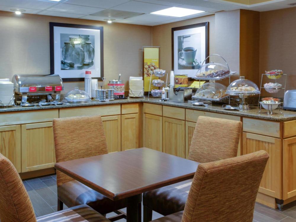A complimentary hot/cold buffet breakfast is served daily from 6 AM to 10 AM.