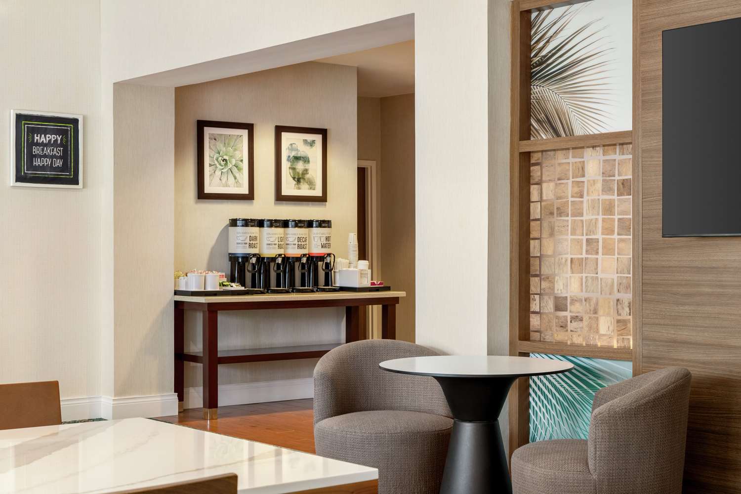 A complimentary hot/cold buffet breakfast is served daily from 6 AM to 10 AM.