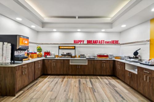 A complimentary hot/cold buffet breakfast is included.