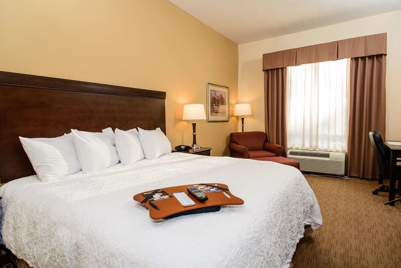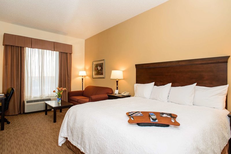 We always stay at a Hampton for personal and for business so it was a no brainer to choose this hotel. Very friendly staff, food was great, rooms were smaller and not very nice looking compared to...