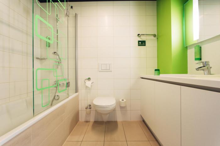 Very stylish hotel, trendy and very modern. Green colour interior with separate changing room and closet. Laundry machine and dryer available. Breakfast is pretty nice . Nearly BILLA superstore. But...