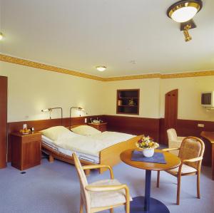 Das 3-Sterne-Haus empfiehlt sich besonders für Rollstuhlfahrer. Die Barrierefreiheit ist komplett. Hilfsmittel, wie WC-Sitzerhöhungen usw. werden bereitgestellt. Ein Bett im Zimmer ist elektr...