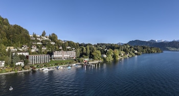 When you stay at Seehotel Hermitage in Lucerne, you'll be on a lake, a 4-minute drive from Swiss Transportation Museum and 9 minutes from Lion Monument. This 4.5-star hotel is 3 mi (4.8 km) from Chapel Bridge and 4.1 mi (6.5 km) from KKL Lucerne.