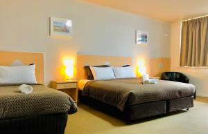 Motel room was dated but clean and spacious with excellent shower. Amenities were good and ample parking. Attached to a BP station with fuel and food. Backs onto the foreshore. About a mile walk into...