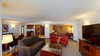 Make yourself at home in one of the 400 air-conditioned rooms featuring refrigerators and LCD televisions. Your pillowtop bed comes with premium bedding. Cable programming and video-game consoles are provided for your entertainment, with wired and wireless Internet access available for a surcharge. Private bathrooms with bathtubs or showers feature designer toiletries and hair dryers.