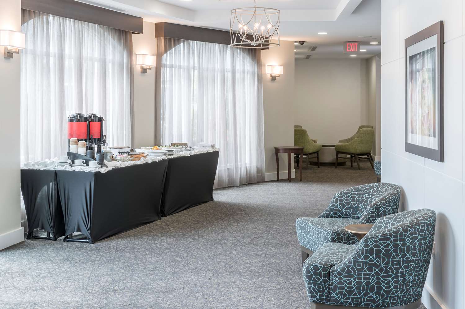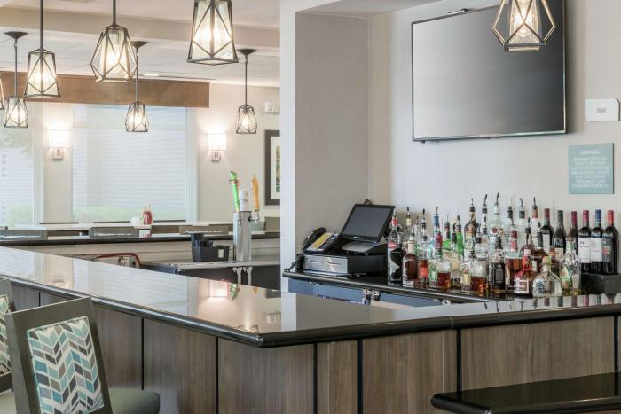 Hotel met all of our expectations. The rooms were clean and the check in and out process was easy. There is a bar in the lobby and a breakfast buffet for 13.95. It is close to the airport and plenty...