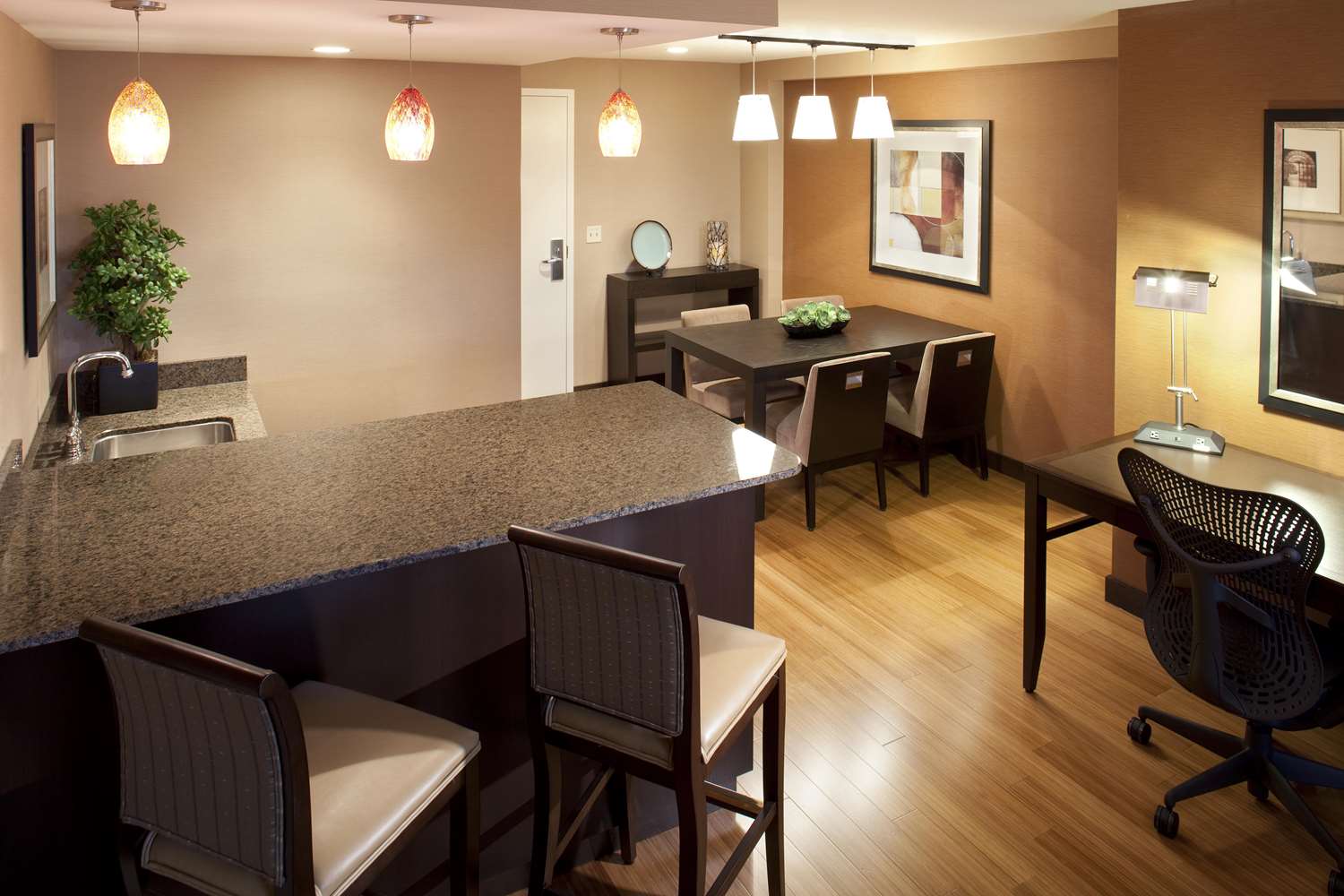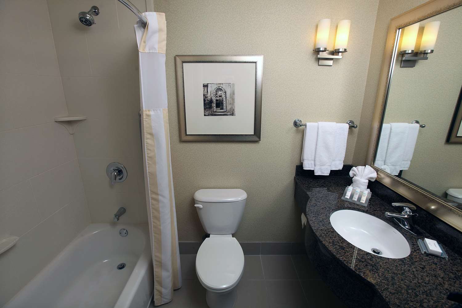 Make yourself at home in one of the 103 air-conditioned rooms featuring refrigerators and microwaves. Wired and wireless Internet access is complimentary, while 32-inch flat-screen televisions with cable programming provide entertainment. Private bathrooms with bathtubs or showers feature complimentary toiletries and hair dryers. Conveniences include desks and complimentary weekday newspapers, as well as phones with free local calls.
