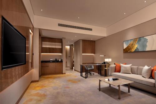 With a stay at Hilton Taizhou in Taizhou (Jiaojiang), you'll be within a 15-minute drive of Taizhou Stadium and Kiyonaga Temple. This hotel is 3.1 mi (5.1 km) from Riverside Park and 9.9 mi (16 km) from Jiufeng Park of Huangyan.