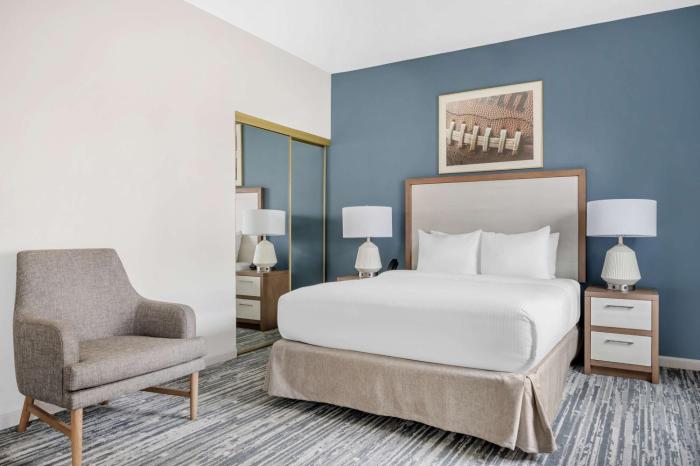 Make yourself at home in one of the 86 individually decorated guestrooms, featuring refrigerators and flat-screen televisions. Cable programming and DVD players are provided for your entertainment, while complimentary wireless Internet access keeps you connected. Private bathrooms with shower/tub combinations feature designer toiletries and hair dryers. Conveniences include phones, as well as desks and complimentary weekday newspapers.