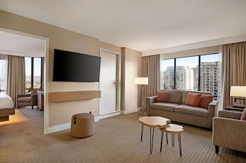 We recently stayed at this hotel in their 2-bedroom suite. This is an "urban" hotel in that the hallways/room layouts are very condensed. The suite rooms and the "sofa area" of the unit are very...