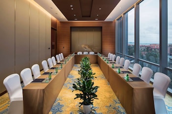 With a stay at Hilton Yantai, you'll be centrally located in Yantai, within a 15-minute drive of No. 1 Bathing Beach and Yantai Whale Shark Aquarium. This 5-star hotel is 4.4 mi (7.1 km) from Zhulin Temple and 4.9 mi (7.9 km) from Huanghai Amusement City.